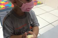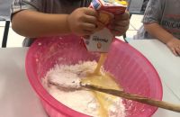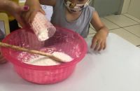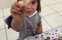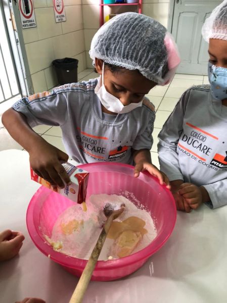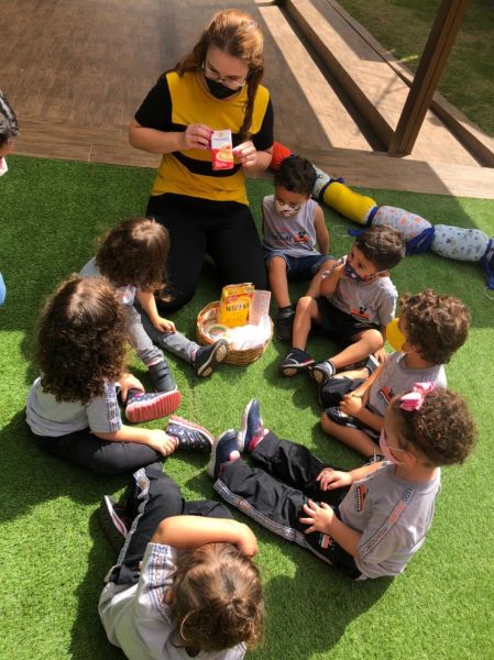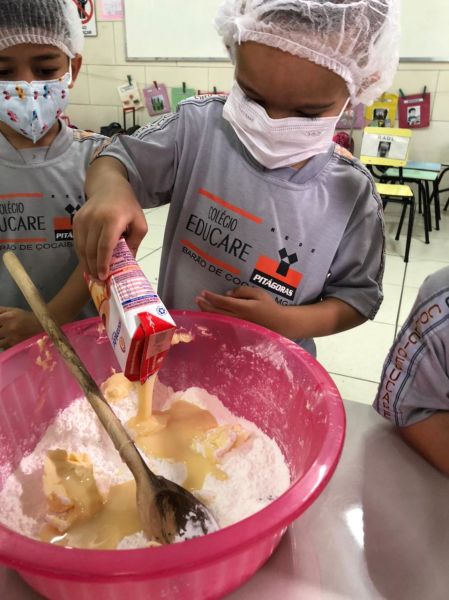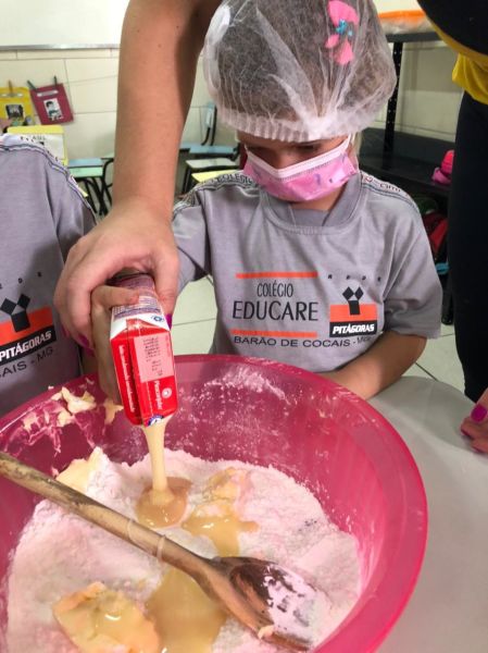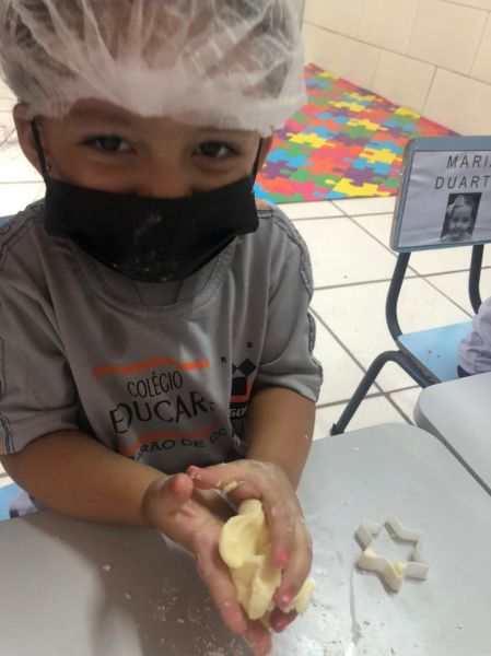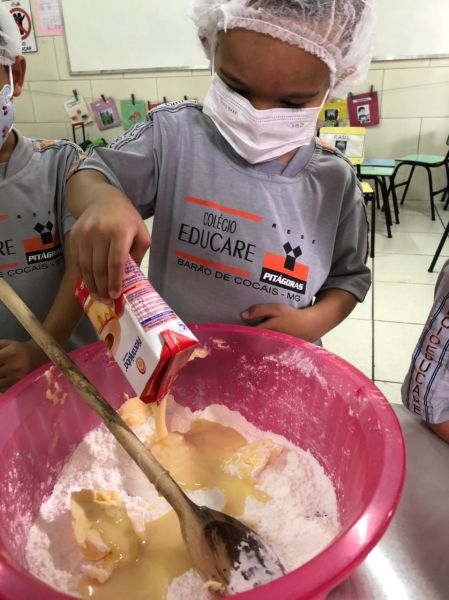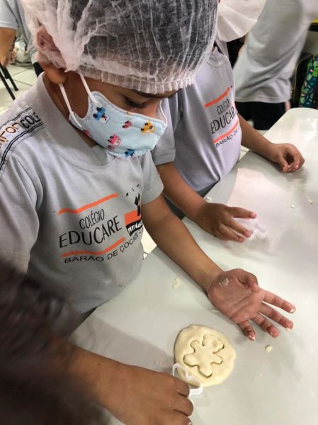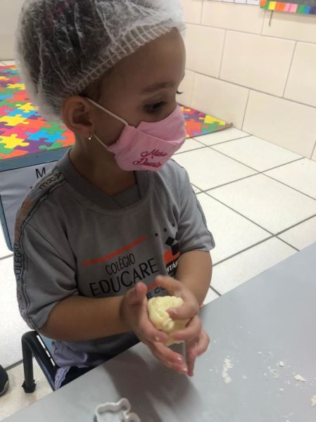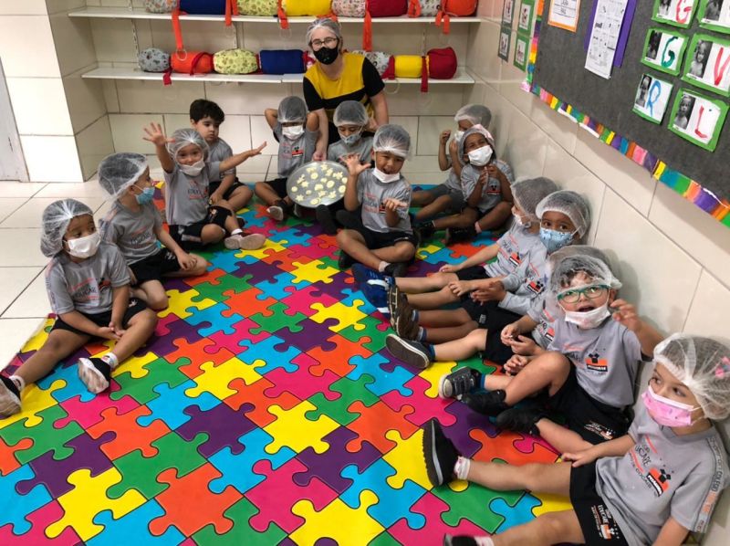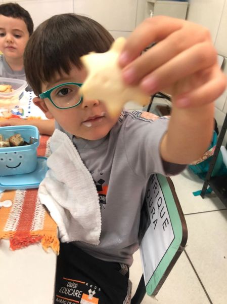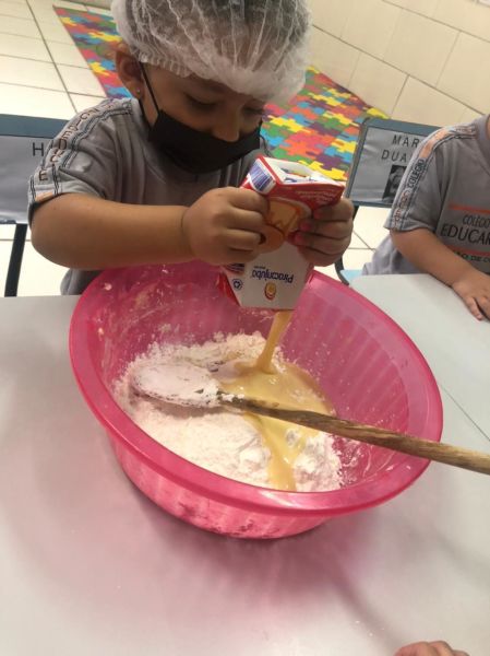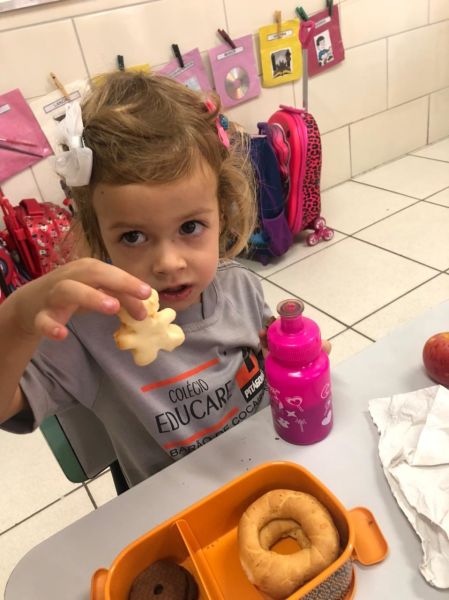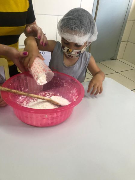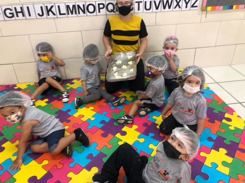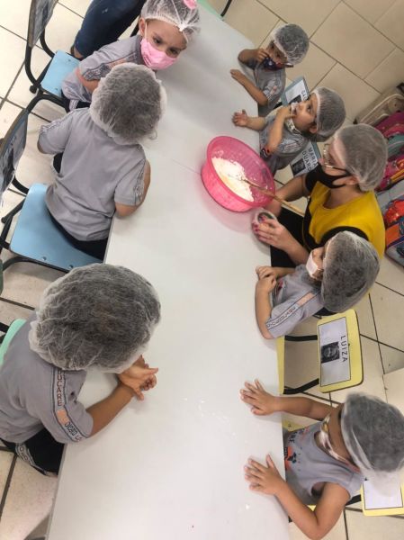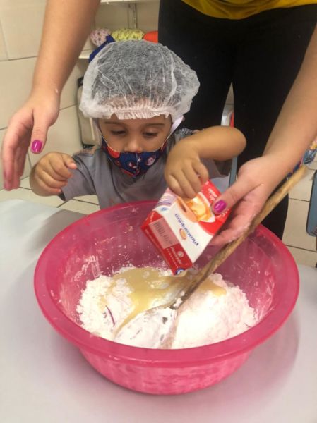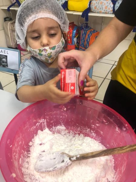 As crianças do Maternal vivenciaram uma deliciosa atividade de culinária. A Fada Flora deixou uma carta para a turma com dicas para encontrarem ingredientes especiais e realizarem a receita secreta do biscoito do crescimento. Foi uma atividade muito divertida e de grande aprendizado sobre alimentação, exploração dos sentidos do corpo, além de conceitos que envolvem os campos de experiência da BNCC, como por exemplo "Espaços, tempos, quantidades, relações e transformações".