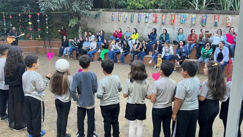 Entre os dias 23 a 27 de maio, as turmas da Educação Infantil e Anos Iniciais do Ensino Fundamental realizaram momentos de homenagem às mães. Acompanhadas pelo professor Reinaldo Valentin, as crianças cantaram o hino do Colégio e músicas que falam do amor e carinho pelas mães. Após isso, entregaram também suas artes confeccionadas com dedicação, um retrato feito por elas para suas mães em uma bela moldura. Foi um momento emocionante e de estreitamento de laços entre as crianças e suas mães e entre as homenageadas e a escola.