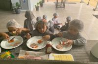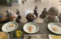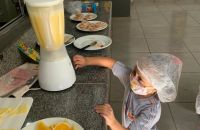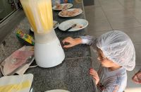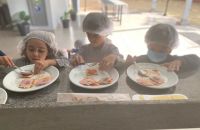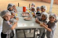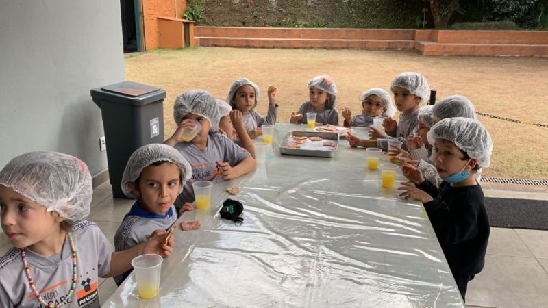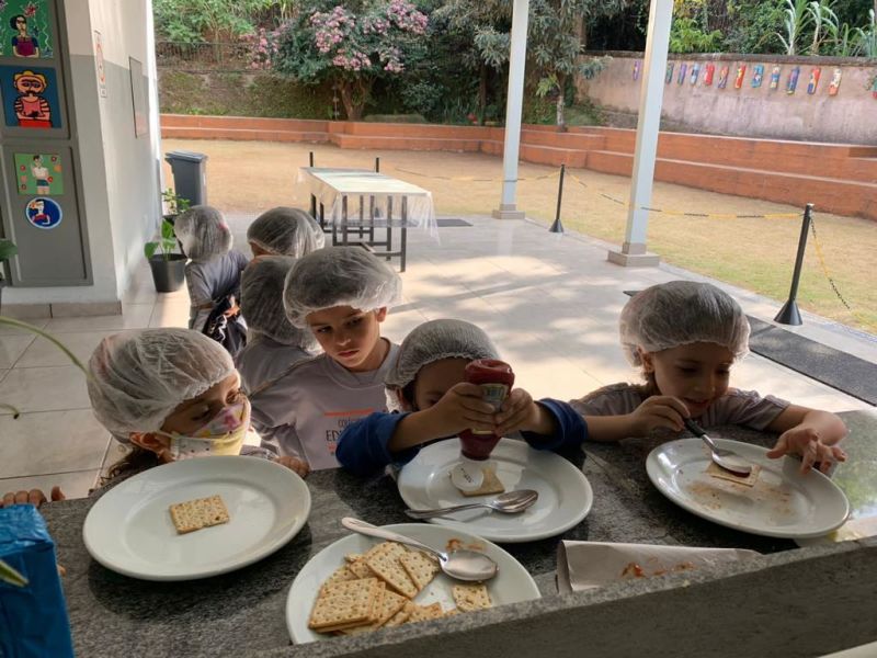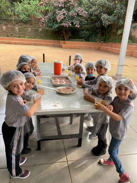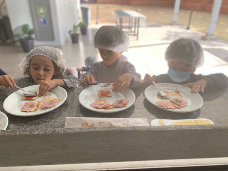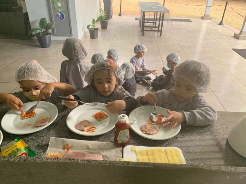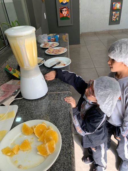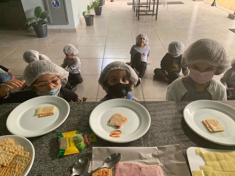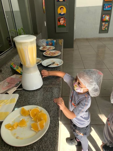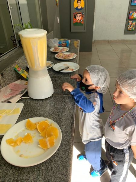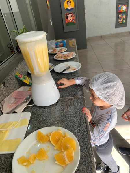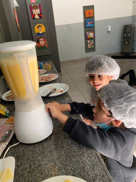 A meninada do 1° período realizou uma receita culinária deliciosa: suco de laranja e pizza de biscoito. Através da receita, as crianças constroem importantes habilidades de forma extremamente lúdica. Afinal, aprender sobre os números, as cores e os tamanhos fica bem mais divertido com a mão na massa. Confira algumas fotos da turma neste momento especial!