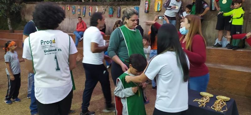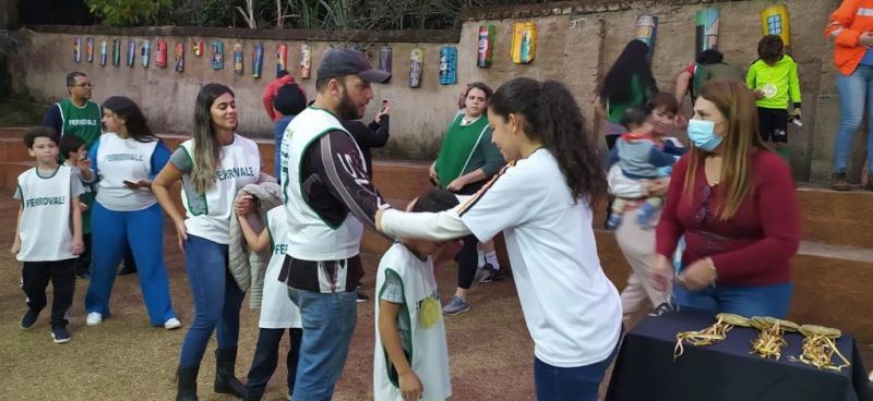A turma do 2° ano EFI participou, junto às suas famílias, de um final de tarde recreativo, com jogos de queimada e futebol com a participação do professor Reinaldo Valentin. Foi um momento muito divertido e de integração entre família e escola. Ao final, todos foram premiados com uma medalha de participação!