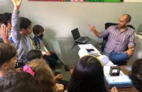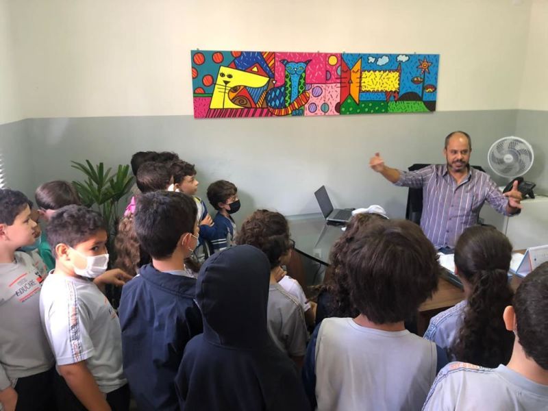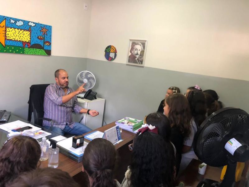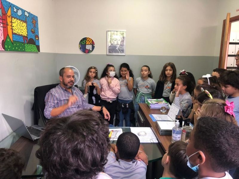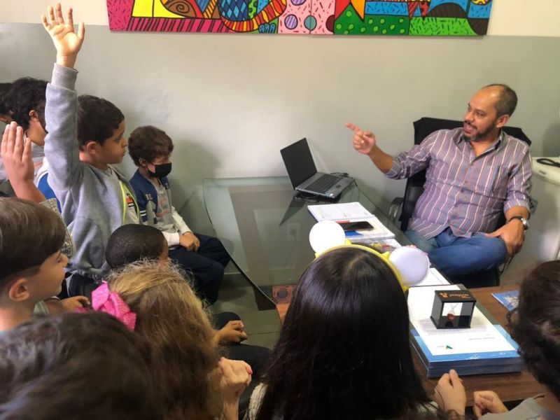 As crianças do 3° ano realizaram uma atividade especial no Colégio para colocar em prática seus conhecimentos. A turma enviou um e-mail para o diretor Moisés Belém, solicitando uma visita à sua sala, para avançar ainda mais nos estudos sobre trajetos e pontos de referência em Matemática, e também sobre as profissões, em História/Geografia.