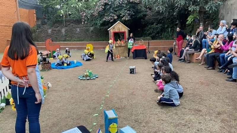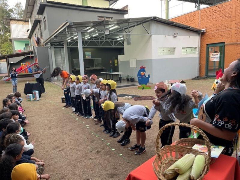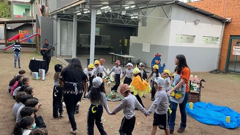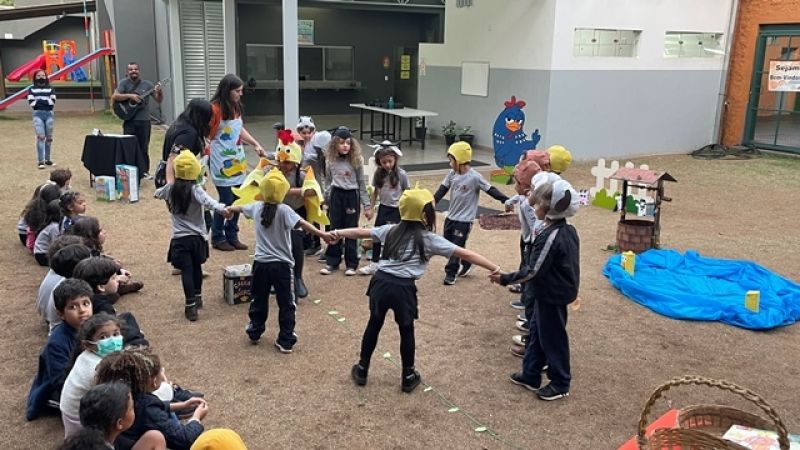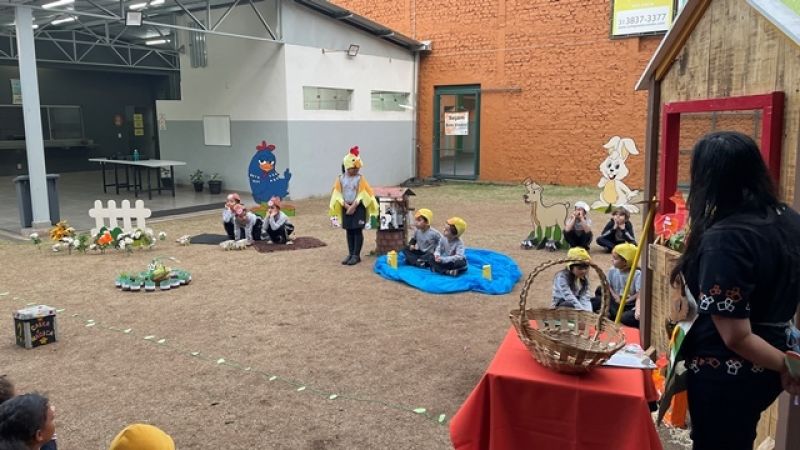 A Turma do 2° Período do Colégio Educare realizou uma encenação da história A galinha ruiva. Cada criança representou um personagem e, ao final, entregaram um delicioso bolo de milho preparado pela galinha no teatro. As crianças aprenderam sobre cooperação e a importância de sempre ajudarem ao próximo. Foi um momento especial e de muito aprendizado para as famílias e nossos estudantes.