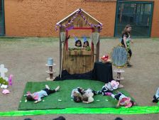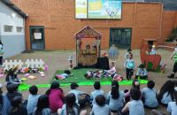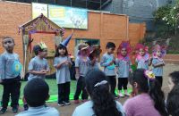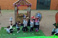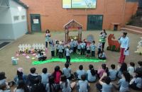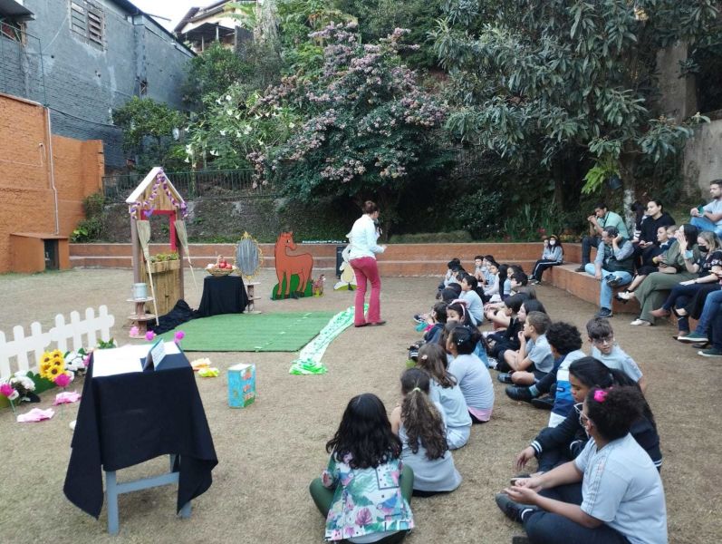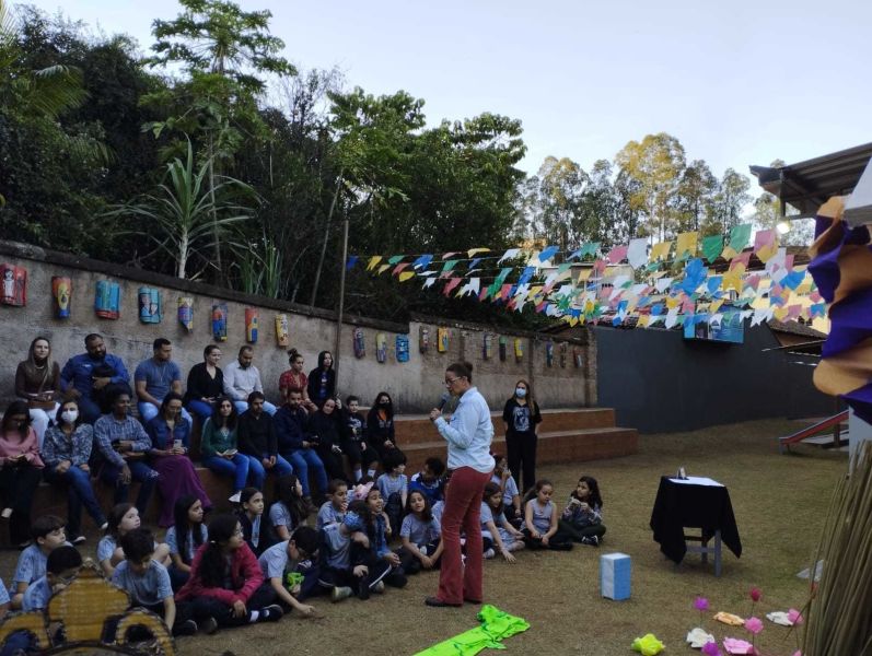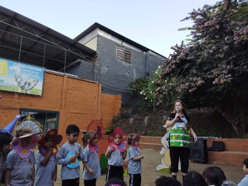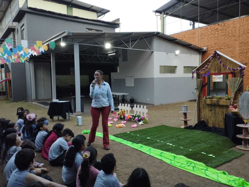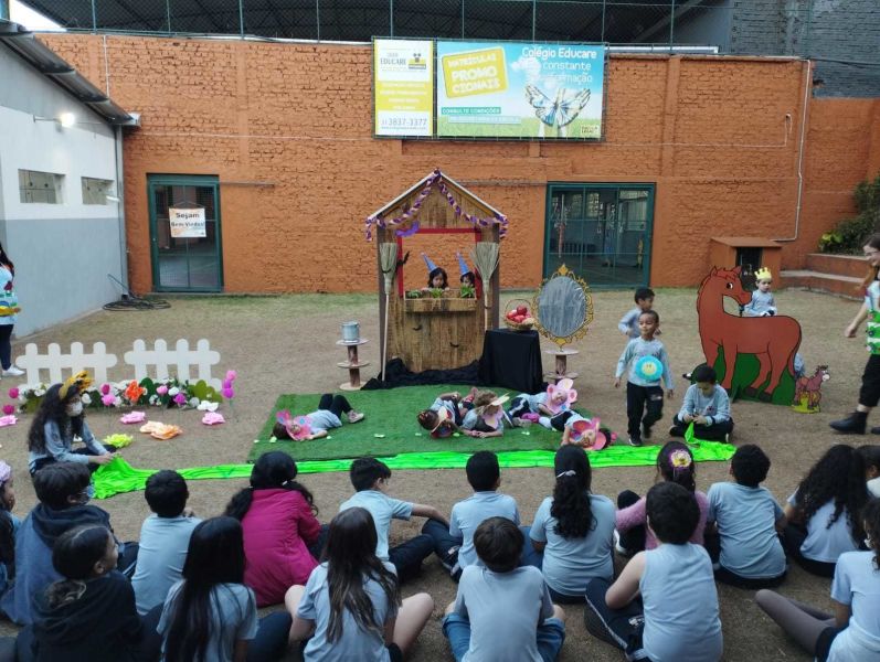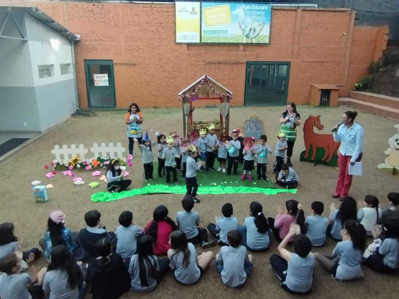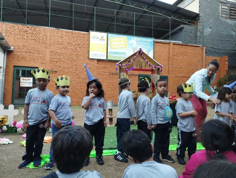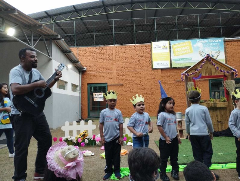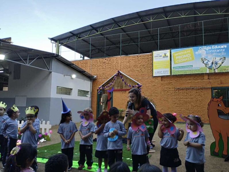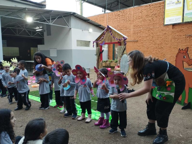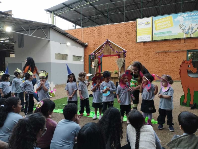 As crianças do Maternal apresentaram para as famílias uma linda encenação da cantiga popular "A linda Rosa Juvenil". Com a representação da música, elas criaram suas narrativas e construíram seus espaços no mundo da imaginação, tornando o momento único e muito divertido.