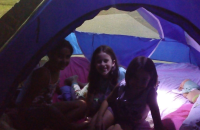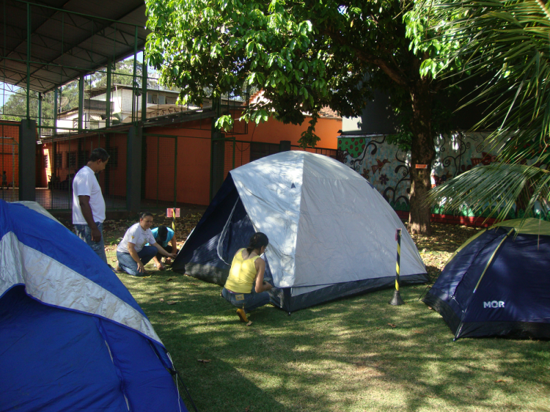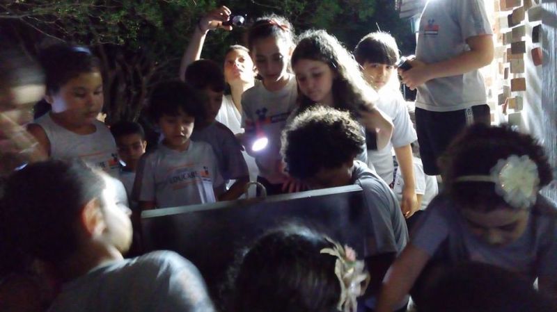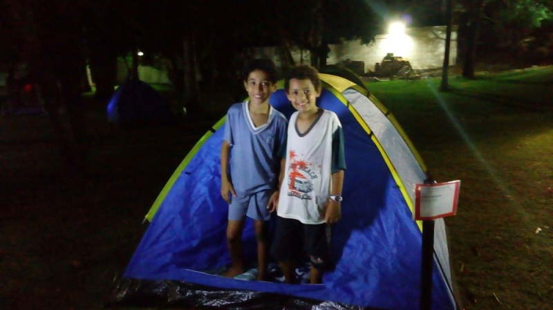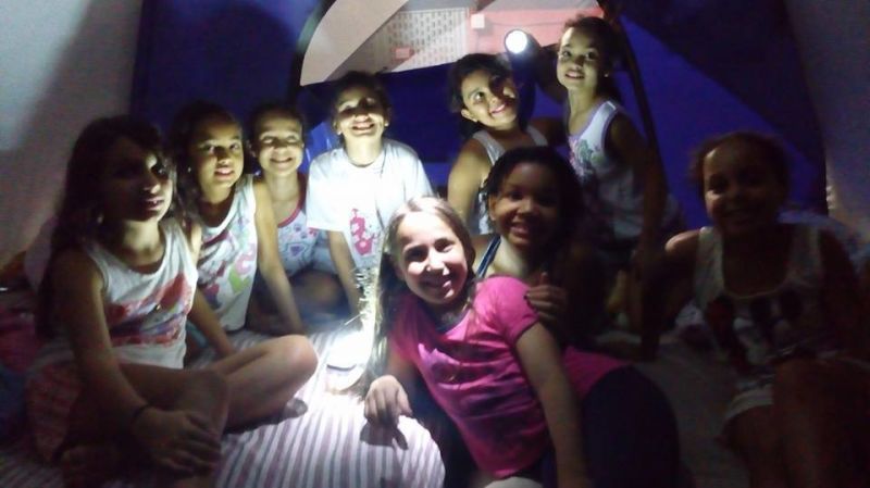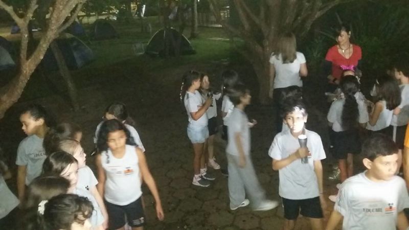 As turmas de 4° e 5° Ano do Ensino Fundamental demoraram a pegar no sono nas barracas em seu acampamento. Aquecimento com música e dança, gincana, caça ao tesouro, teatro de sombras, contos de terror, jantar e muita...muita alegria!