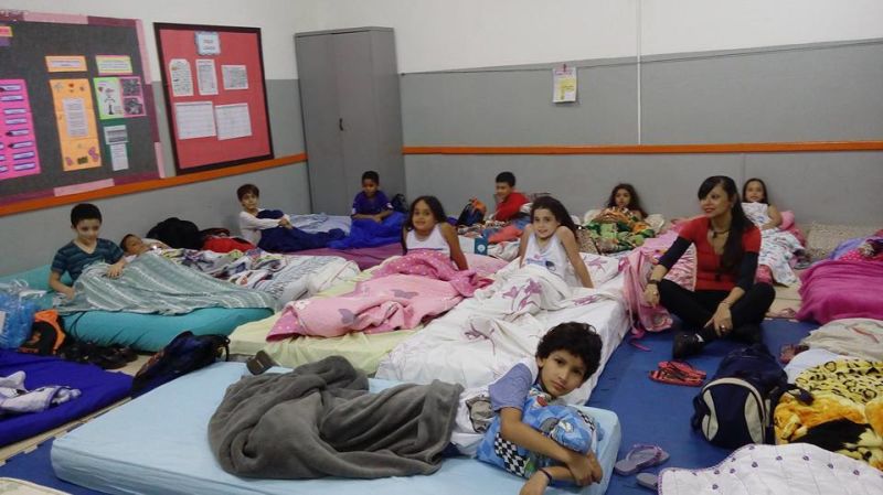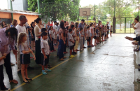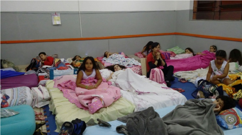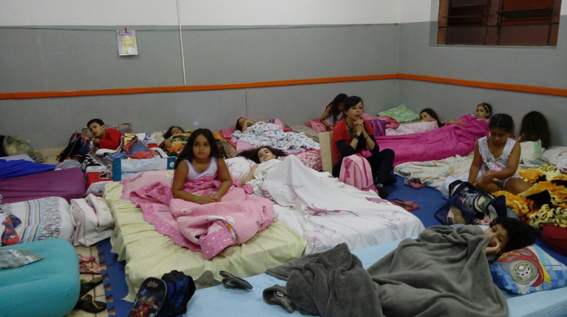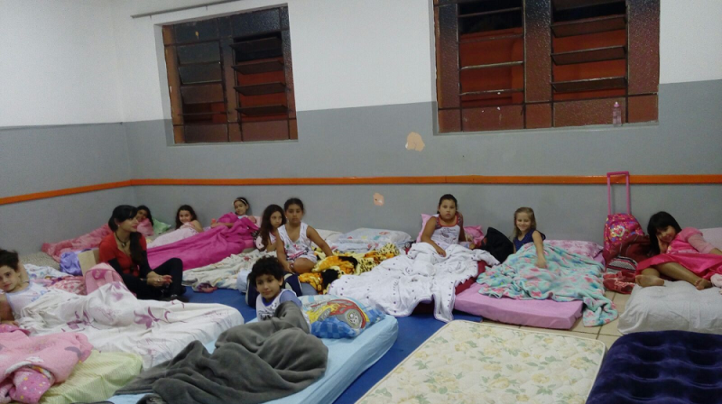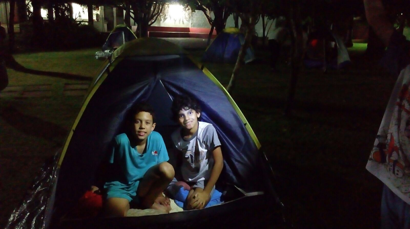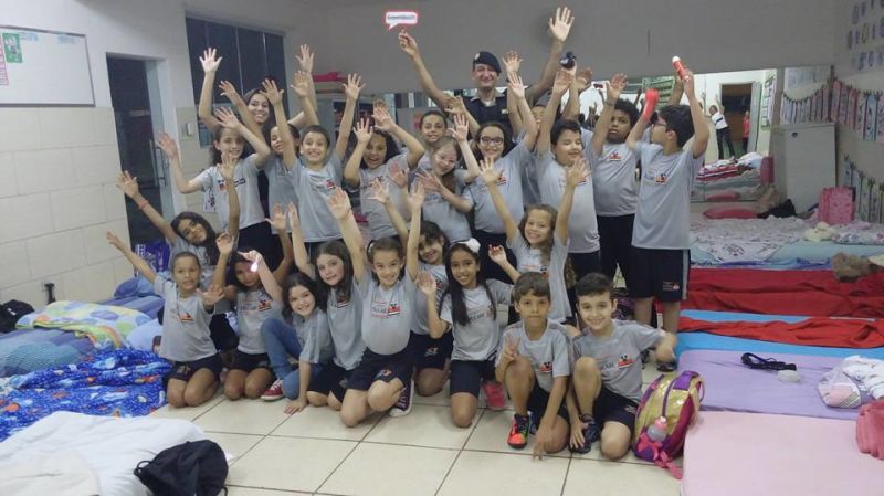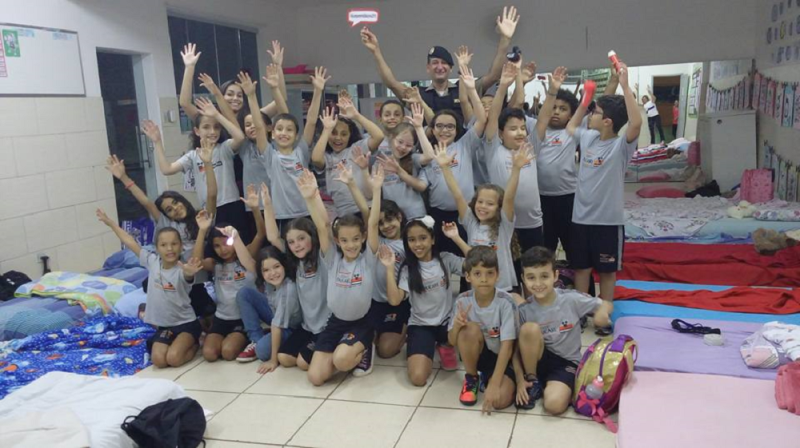 Alunos do 2° e 3° Ano dormiram nas salas participando do acantonamento.