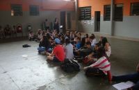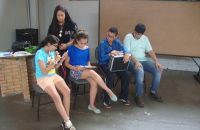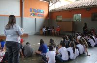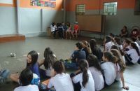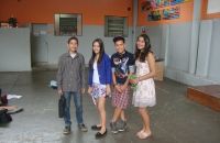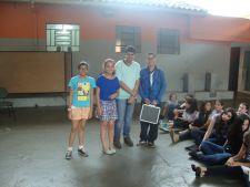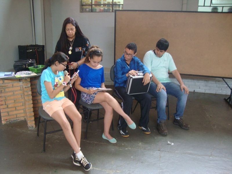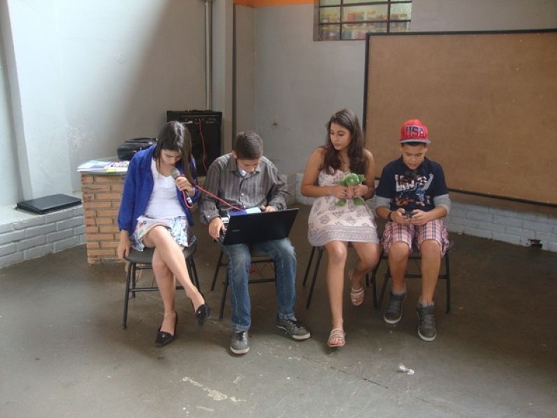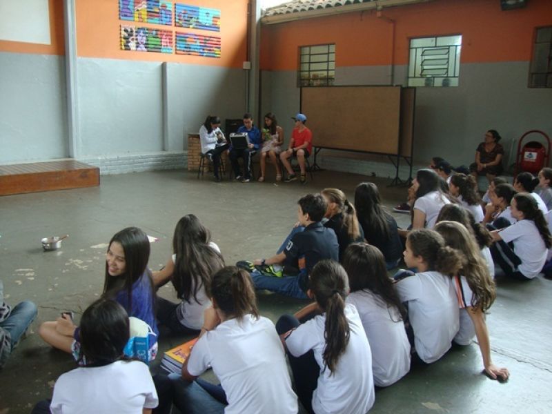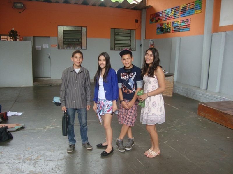 A professora de Inglês Ana Paula Vieira propôs para a turma do 7° Ano do Ensino Fundamental uma avaliação diferente: avaliar a pronúncia dos alunos por meio de um teatro utilizando um texto do livro. Alunos e professora aprovaram a ideia e pretendem realizar essa atividade novamente no próximo ano.