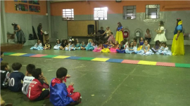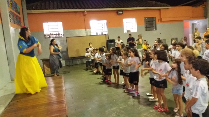 Os alunos do 2° Período e do 1° Ano do Ensino Fundamental participaram da Noite divertida no colégio. Aquecimento com música e dança, gincana, caça ao tesouro, hora do conto, lanche e desfile, deixaram as crianças encantadas.