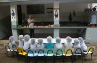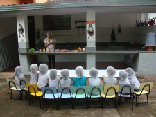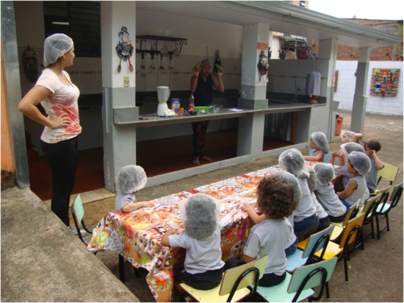 A professora Jaqueline Nunes conversa todos os dias com seus alunos sobre a importância de comerem bem para “ficarem sempre fortes sem nenhuma doença”.
