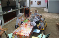 Jaqueline tem insistido com a meninada no cuidado de não comer muito doces e biscoitos recheados, pois “isso deixa as pessoas doentes”.