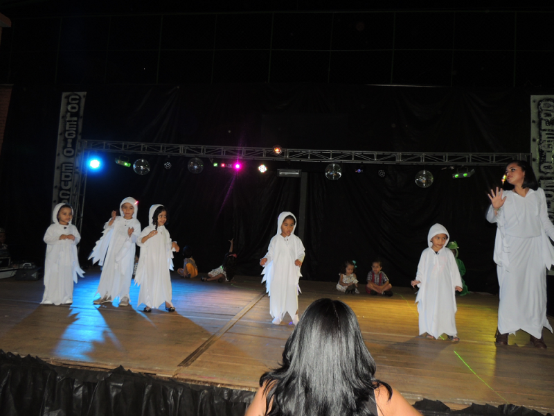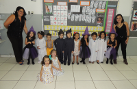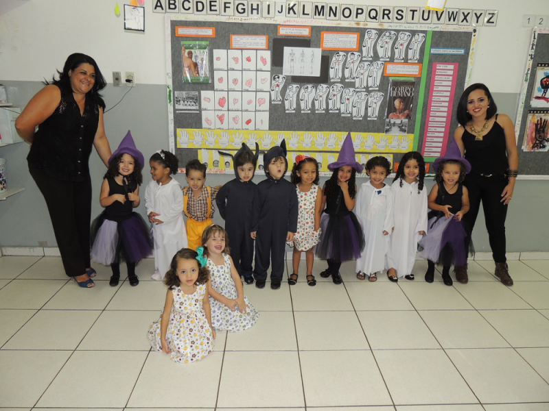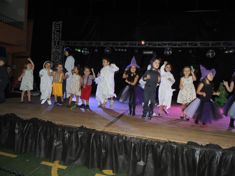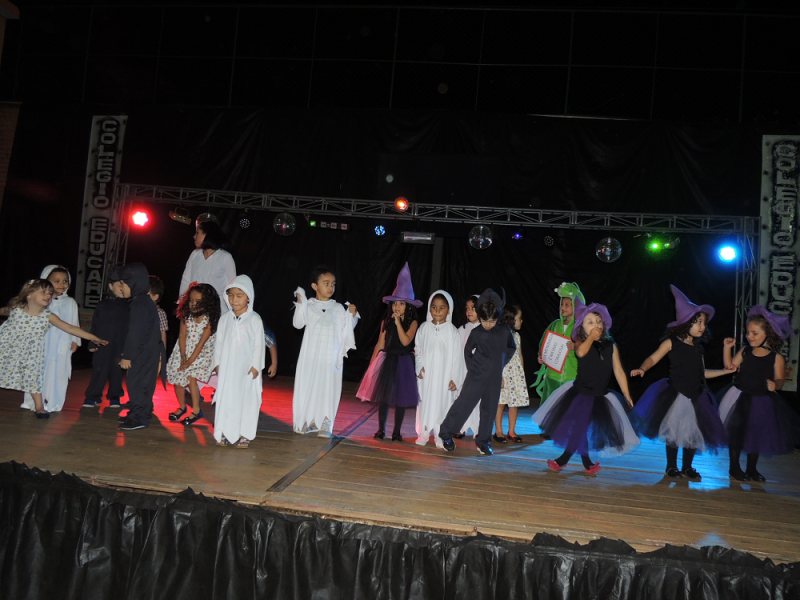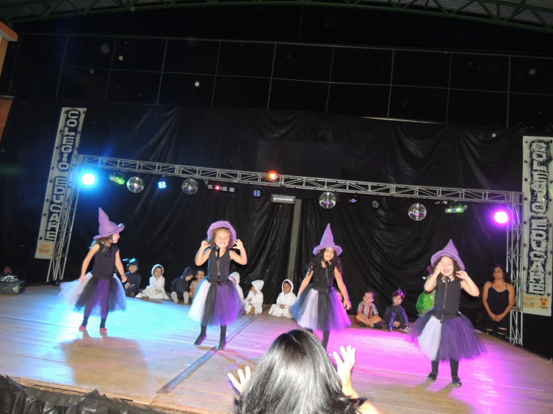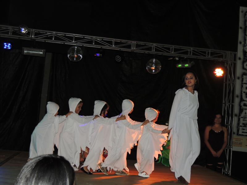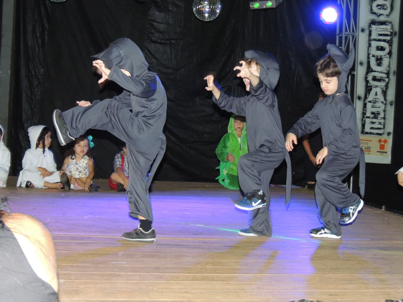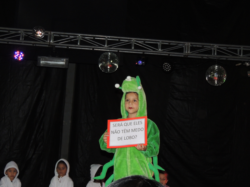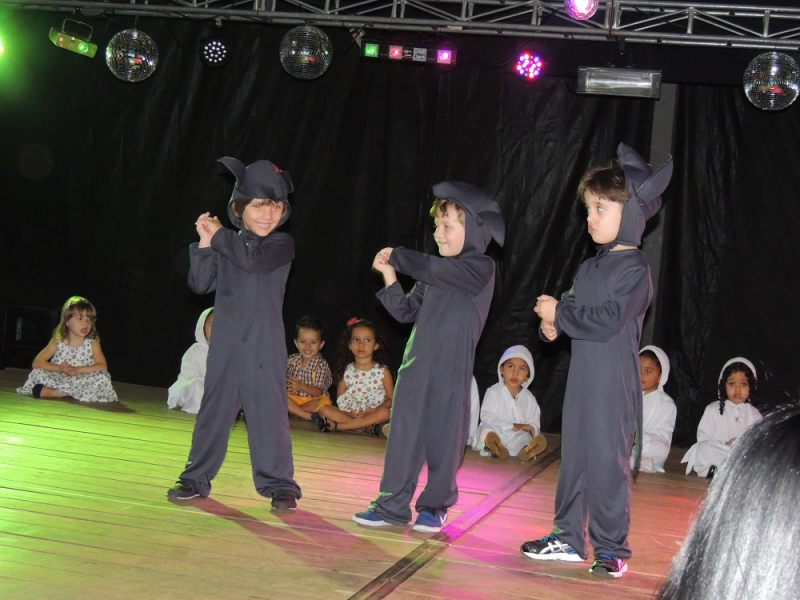 Você tem medo de que? De bruxa, de lobo, de fantasma? Você tem medo de que? Com alegria de criança e responsabilidade de gente grande os alunos do Maternal subiram ao palco na Mostra de Arte para registrar alguns de seus medos por meio da música e da dança. O livro com reconto de um conto de fadas e a linda pintura na caixa com o jogo de quebra cabeça mostraram aos visitantes do evento o quanto “grande” podem fazer essas crianças ainda tão “pequenas”.