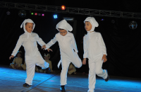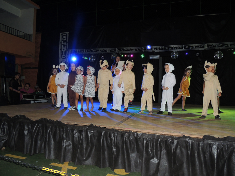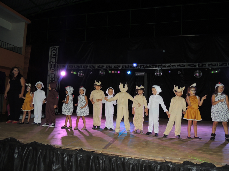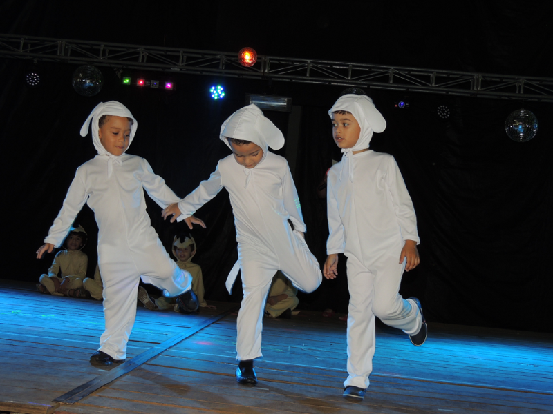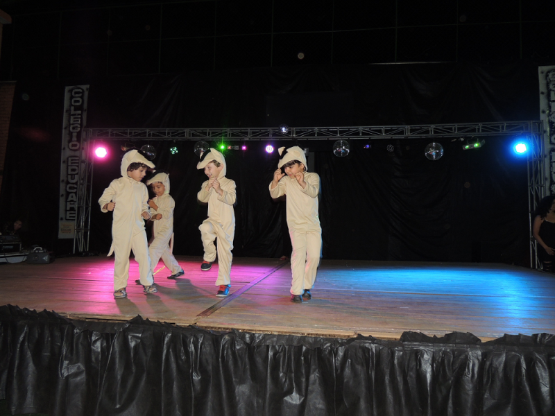 A tela que pintaram baseada na apreciação de obras de Ivan Cruz e Botticelli ficaram tão lindas que certamente enfeitarão as casas destes alunos. Para completar a apresentação do projeto essas crianças ainda realizaram no palco uma encenação musical: Os Saltimbancos. Parabéns 1° Período e professora Chirley. Vocês brilharam!