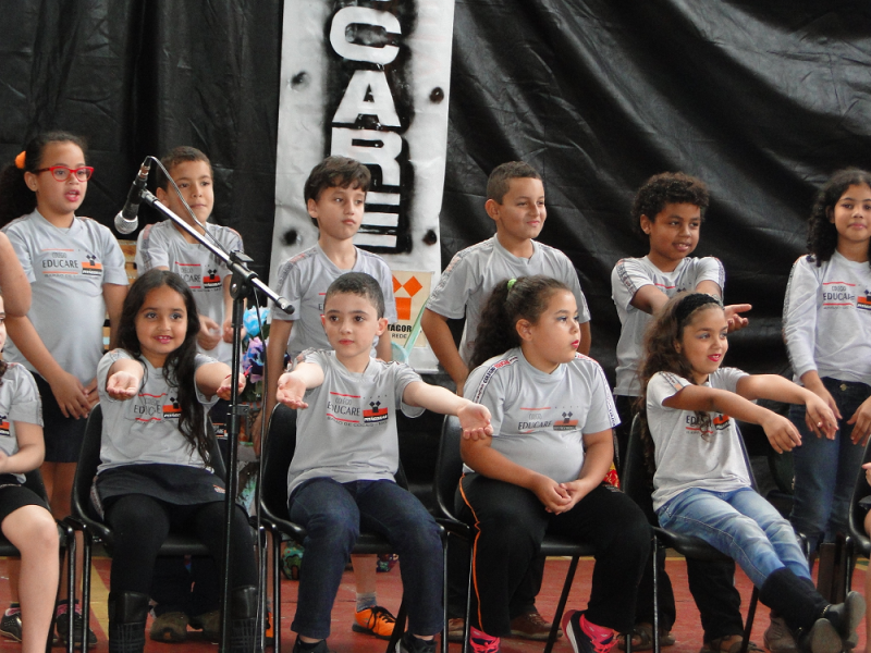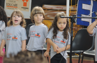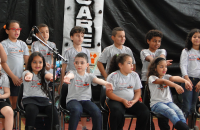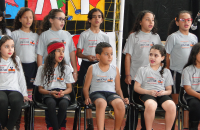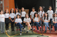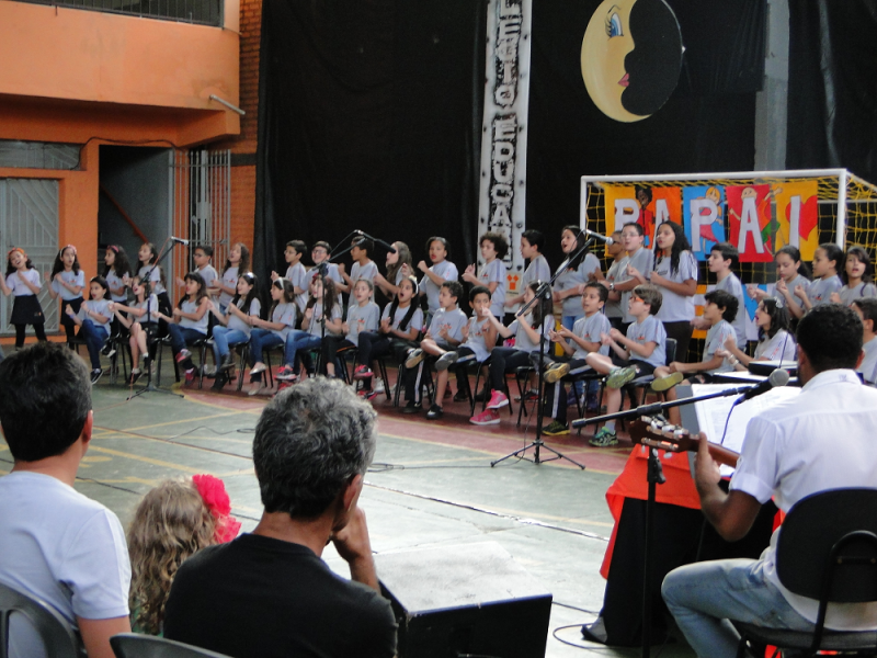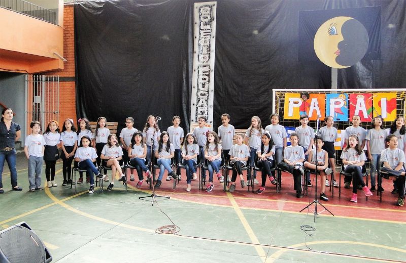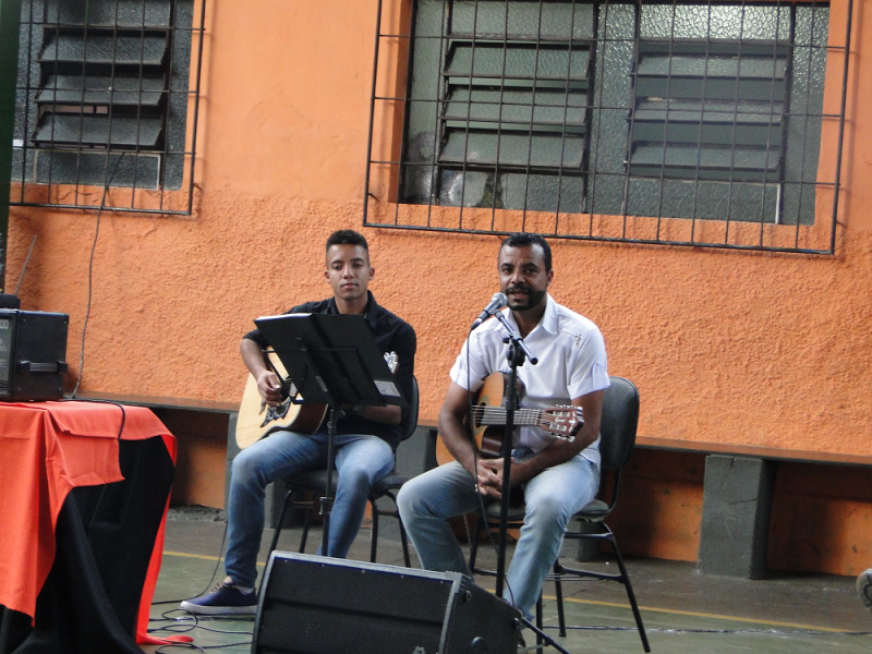 Alguns pais não conseguiram conter a emoção e choraram na apresentação de música realizada pela meninada junto com o professor Reinaldo Valentin.