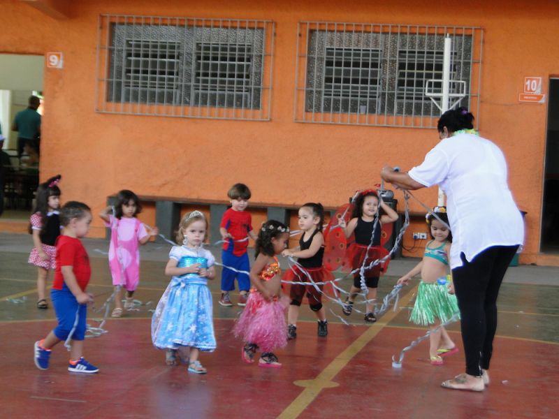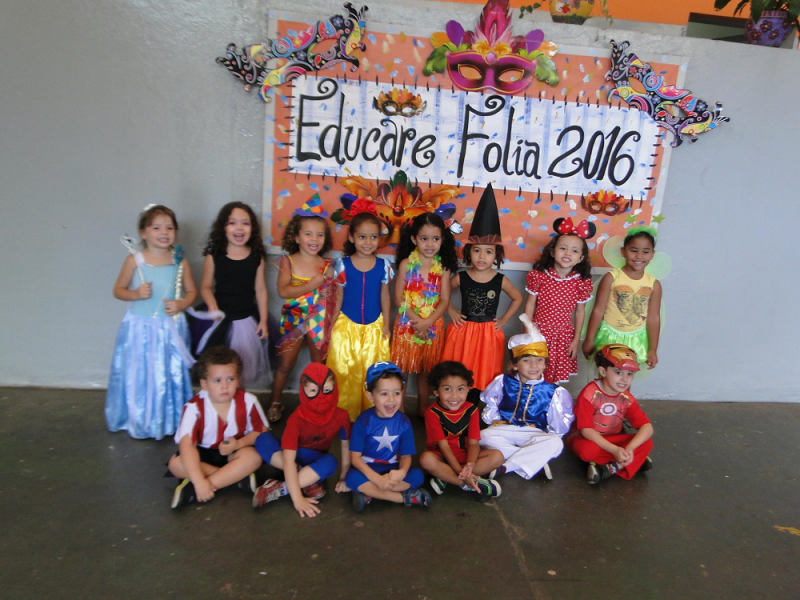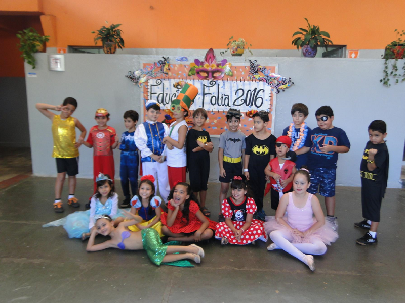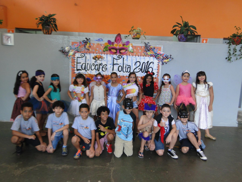 Além de pesquisarem em sala sobre a origem do carnaval, blocos, desfiles e marchinhas tradicionais carnavalescas, as turmas organizaram a Folia Educare com um animado baile de carnaval com fantasias bem originais e uma alegre atividade na praça das águas.